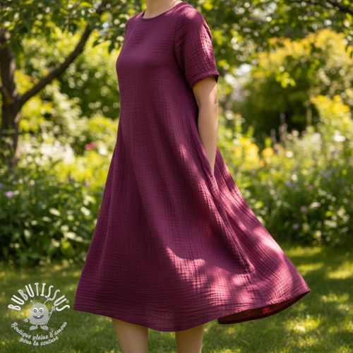 Tissu double gaze/mousseline wine ORGANIC