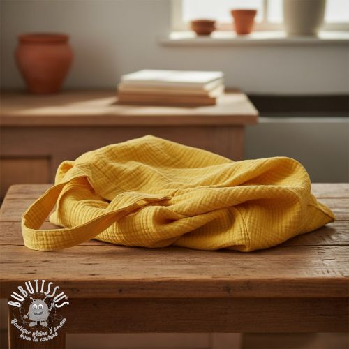 Tissu double gaze/mousseline soft yellow ORGANIC