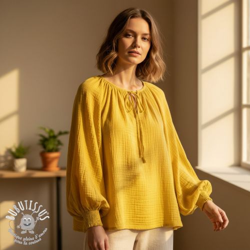 Tissu double gaze/mousseline soft yellow ORGANIC