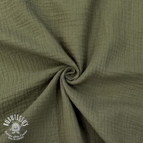 Tissu double gaze/mousseline dark moss green ORGANIC