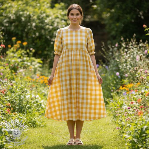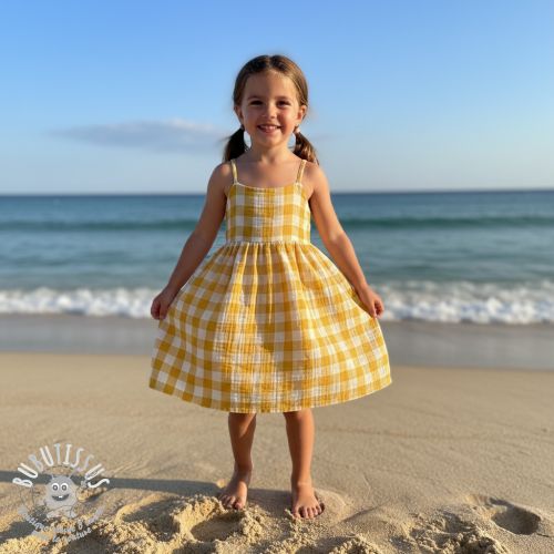 Tissu double gaze/mousseline Double sided CHECKS MINI ochre