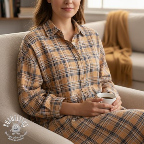 Tissu double gaze/mousseline Double sided CHECKS multicolour brown