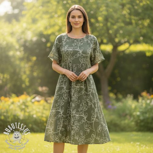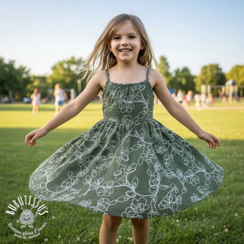 Tissu double gaze/mousseline EMBROIDERY Climbing flowers pickle