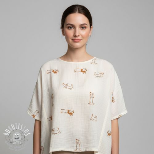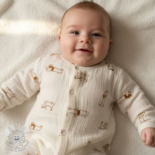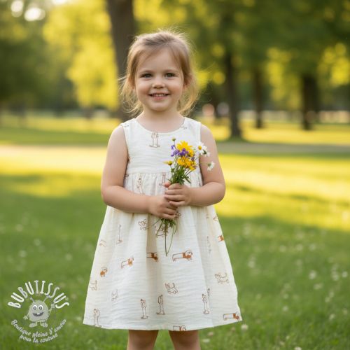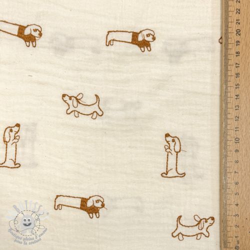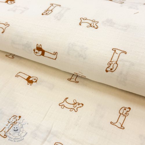 Tissu double gaze/mousseline EMBROIDERY Dogs ecru