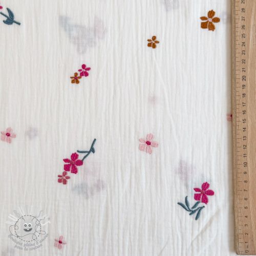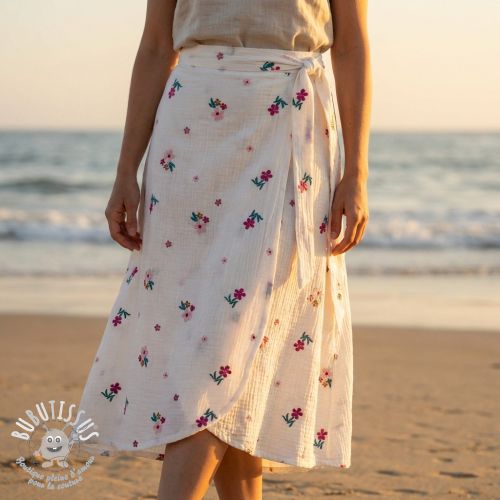 Tissu double gaze/mousseline EMBROIDERY Flowers MIA camel