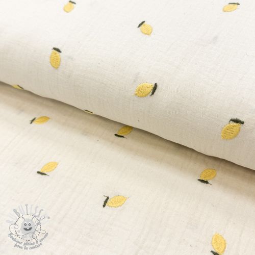 Tissu double gaze/mousseline EMBROIDERY Fruit natural yellow
