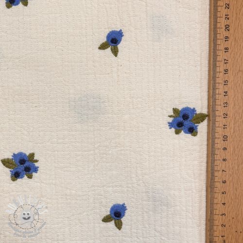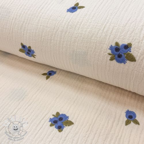 Tissu double gaze/mousseline EMBROIDERY STRIPED Fruit natural