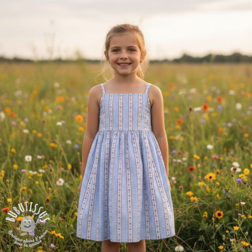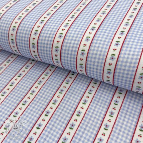 Tissu double gaze/mousseline Flowers check blue digital print