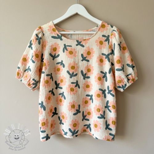 Tissu double gaze/mousseline Flowers peach by JENNIFER BOURON ORGANIC