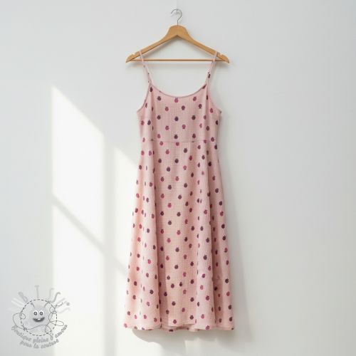 Tissu double gaze/mousseline Fruits cherry soft rose