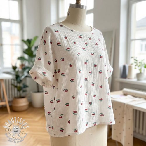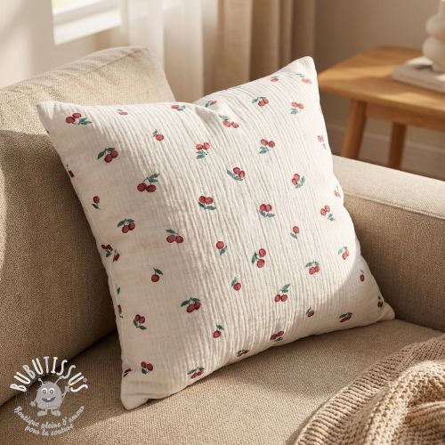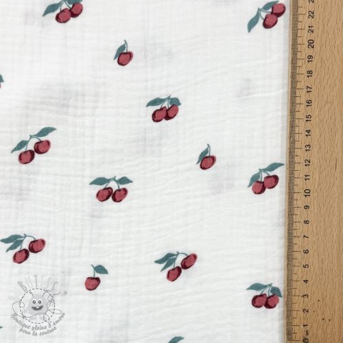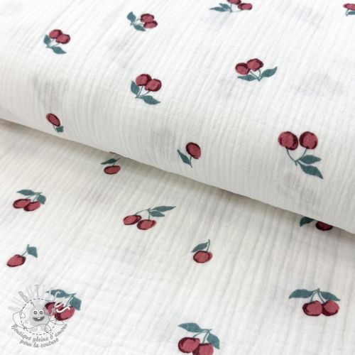 Tissu double gaze/mousseline Fruits cherry ORGANIC