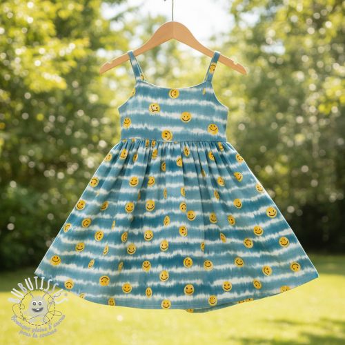 Tissu double gaze/mousseline Happy faces jeans digital print