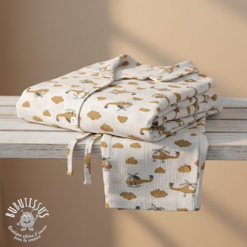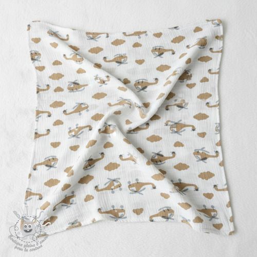 Tissu double gaze/mousseline Helicopters off white