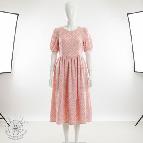 Tissu double gaze/mousseline JACQUARD Dots pink
