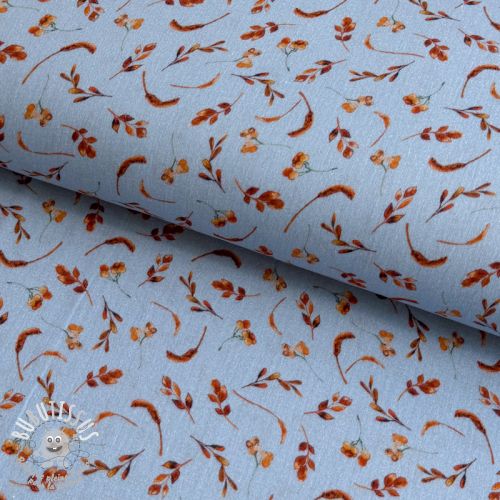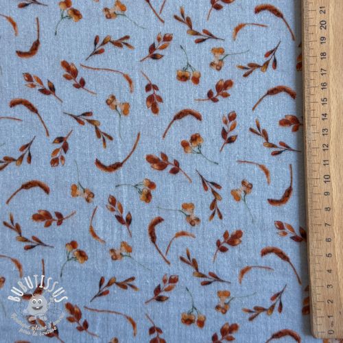 Tissu double gaze/mousseline Leaves field light blue