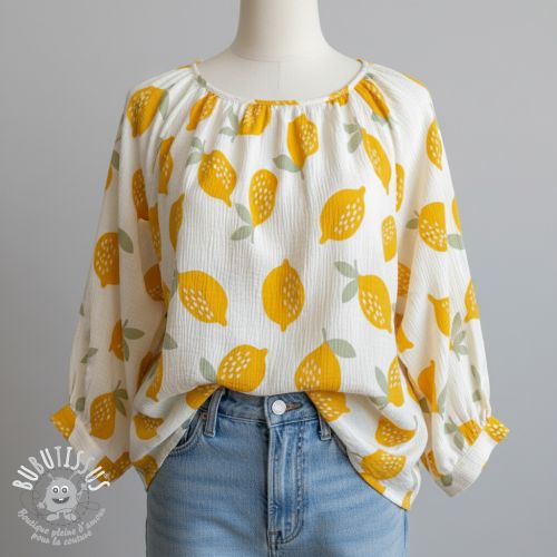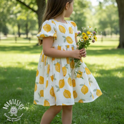 Tissu double gaze/mousseline Lemons white