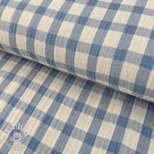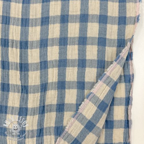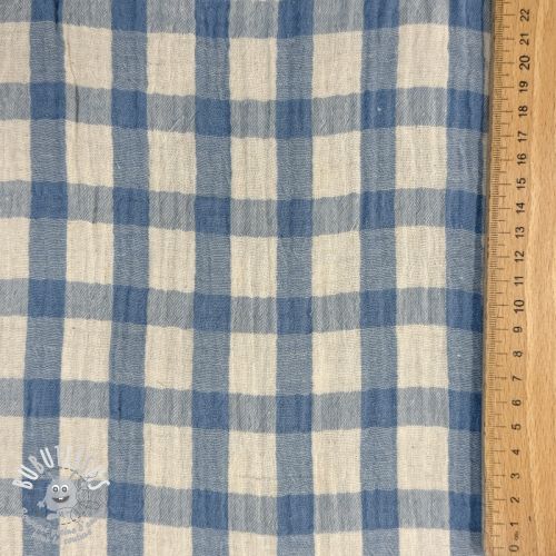 Tissu double gaze/mousseline LINEN YARN DYED Checks light blue natural