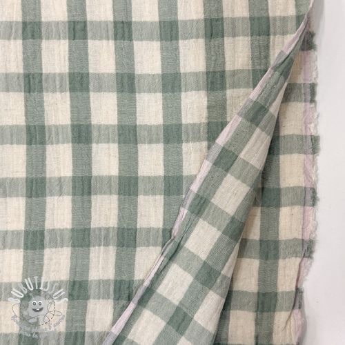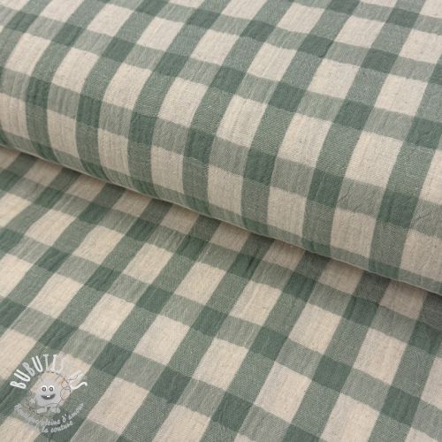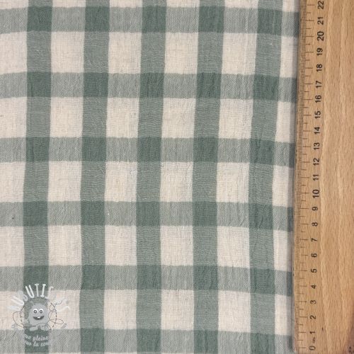 Tissu double gaze/mousseline LINEN YARN DYED Checks sage natural