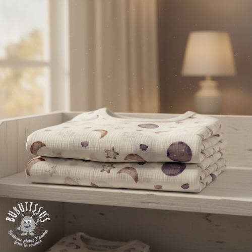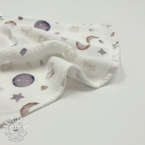 Tissu double gaze/mousseline Moon white digital print ORGANIC