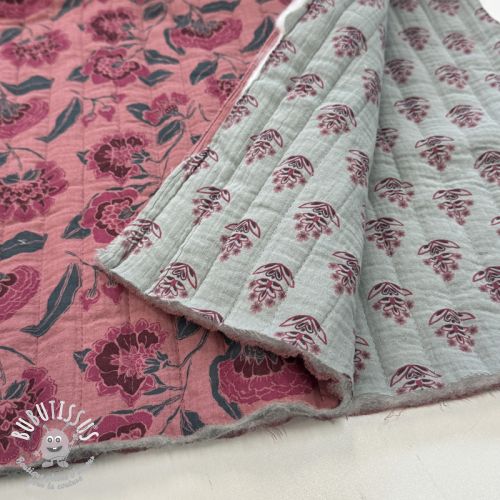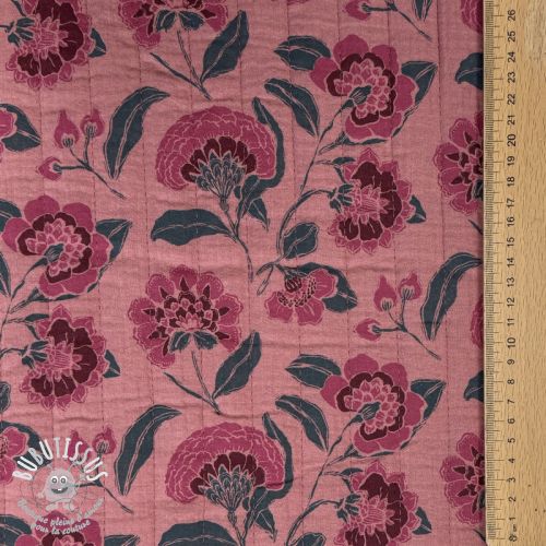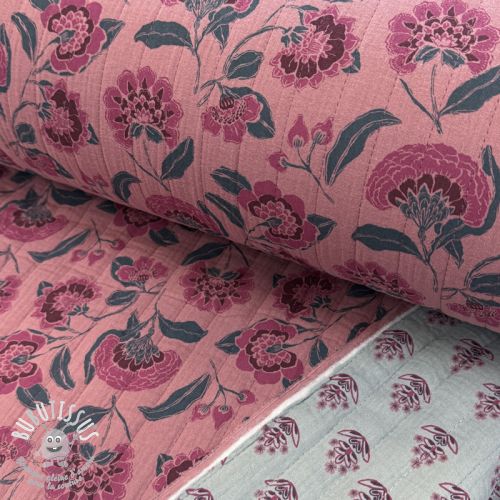 Tissu double gaze/mousseline STEPPED Flowers mauve