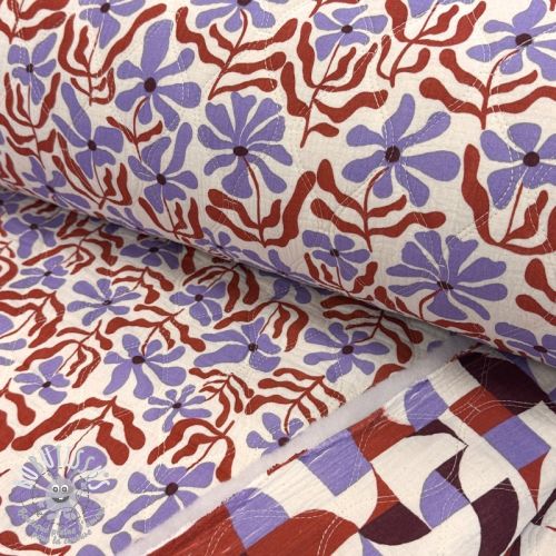 Tissu double gaze/mousseline STEPPED Flowers natural