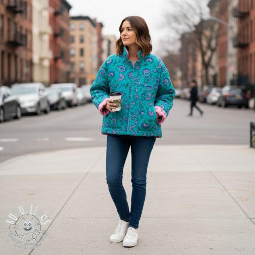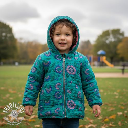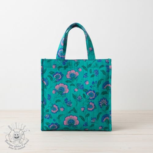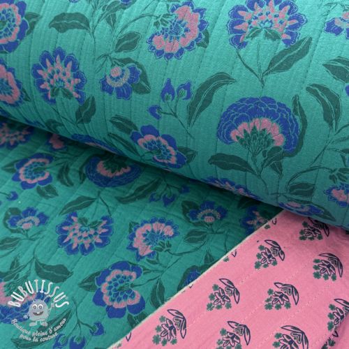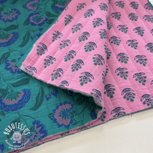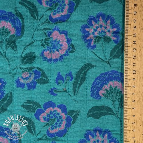 Tissu double gaze/mousseline STEPPED Flowers petrol