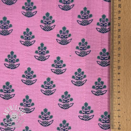 Tissu double gaze/mousseline STEPPED Flowers mauve