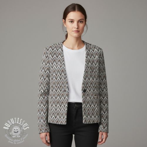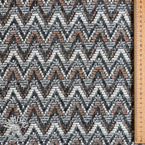 Tissu maille tricot jacquard Comfilia Zigzag wavy brown