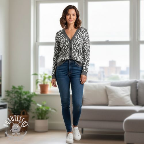 Tissu maille tricot jacquard Comfy Collage shapes grey