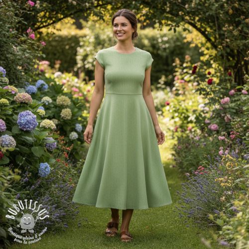 Tissu mélange lin et cotton Fishbone lime
