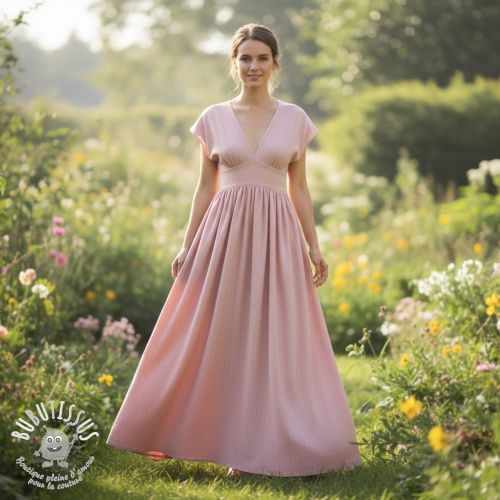 Tissu mélange lin et cotton Fishbone pink