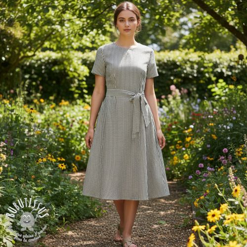 Tissu mélange lin et cotton Lira medium stripe jeans