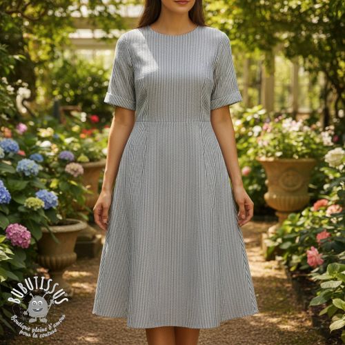 Tissu mélange lin et cotton Lira medium stripe black