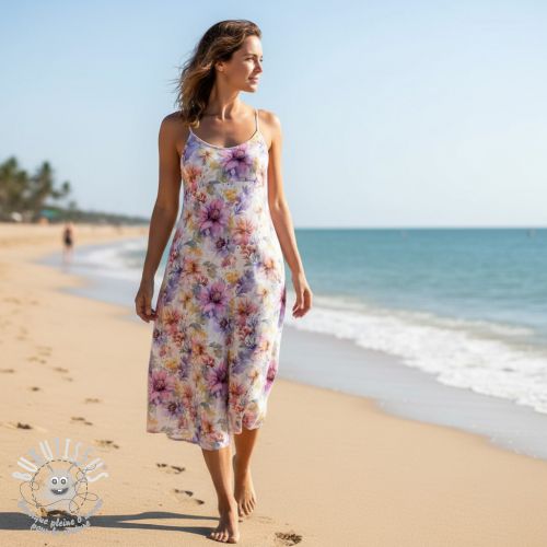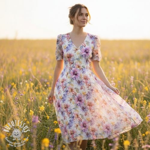 Tissu mélange lin et cotton Peony roses RAMIE light pink digital print
