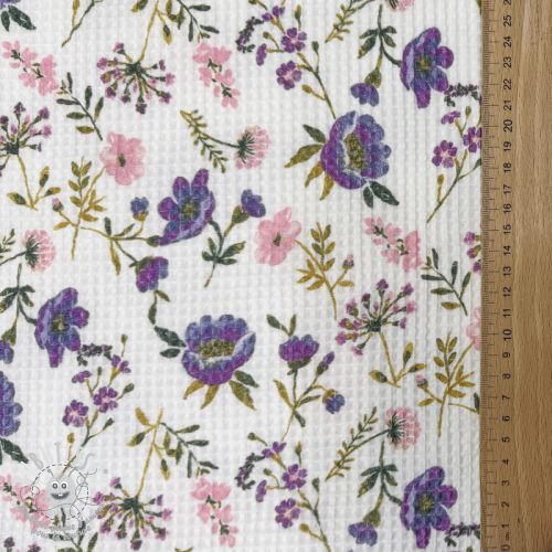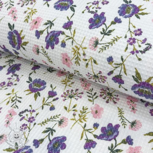 Tissu nid d’abeille Flowers white digital print