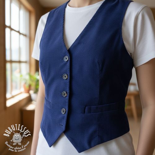 Tissu velours cotelé 6W WASHED STRETCH marine