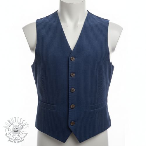 Tissu velours cotelé 6W WASHED STRETCH marine
