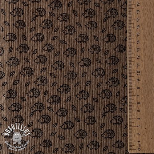 Tissu velours cotelé STRETCH Little hedgehog taupe