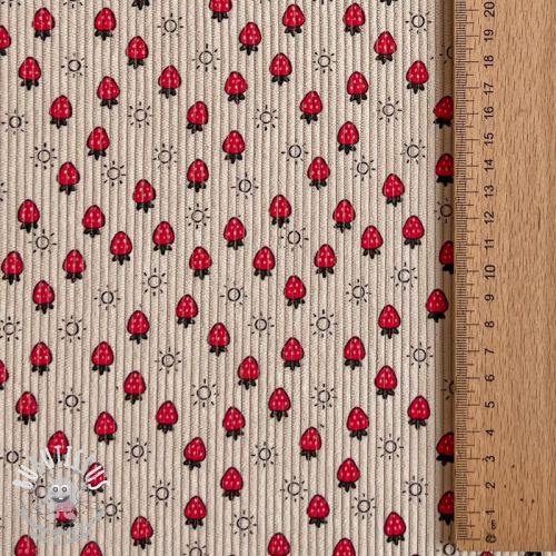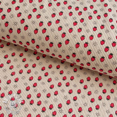Tissu velours cotelé STRETCH Little strawberries light sand