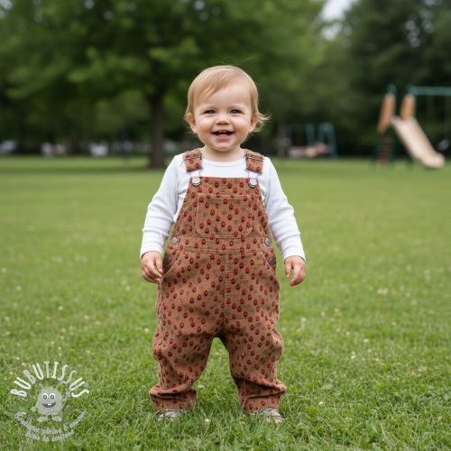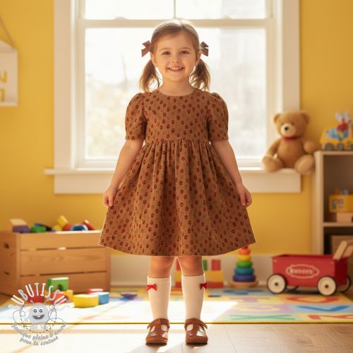 Tissu velours cotelé STRETCH Little strawberries taupe