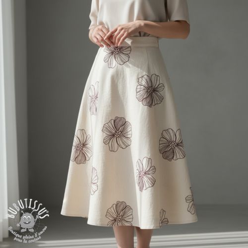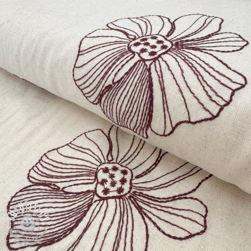 Viscose lin EMBROIDERY Flower Maya natural