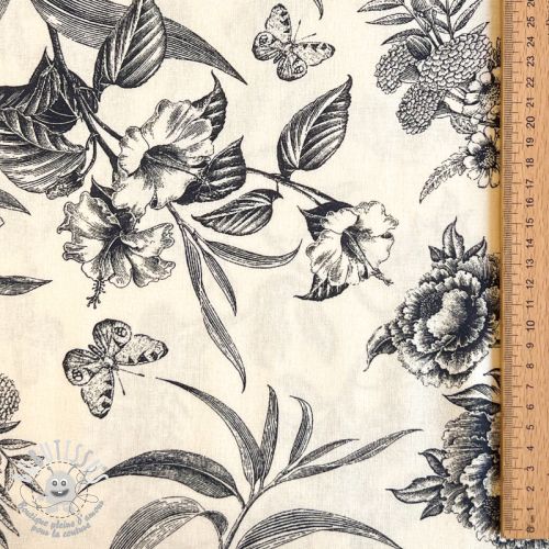 Viscose lin Floweria navy