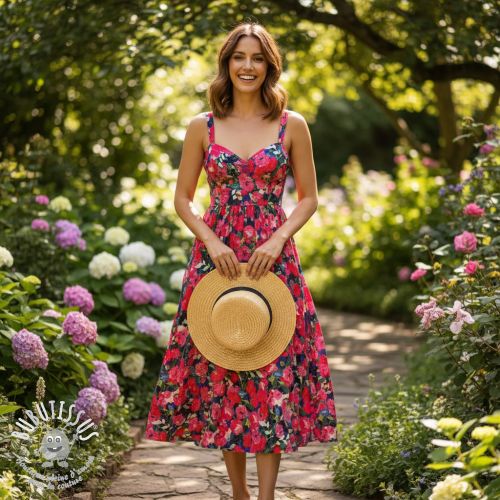 Viscose LUREX Pink flowers digital print