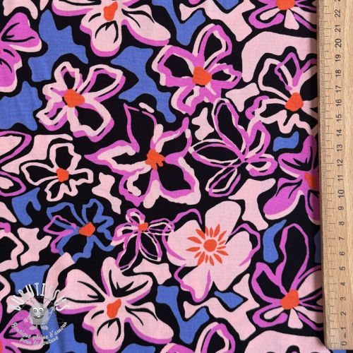 Viscose STRETCH Flowers Junie black