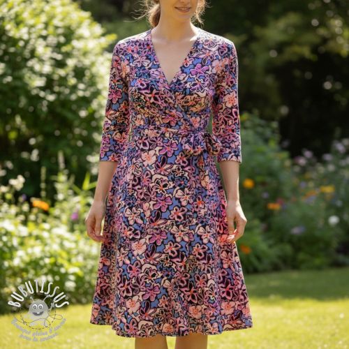 Viscose STRETCH Flowers Junie purple